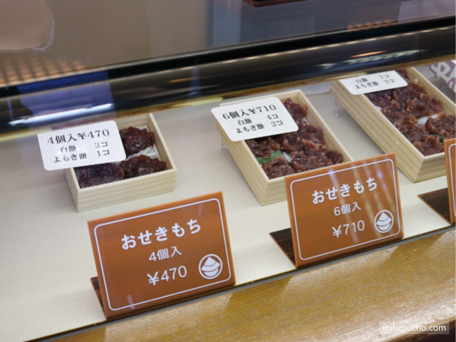 京都市伏見区にある梅の名所、城南宮へ行った帰りのお土産で「おせきもち」と書かれた看板を見つけたので買ってみたらめっちゃ美味しかったです。