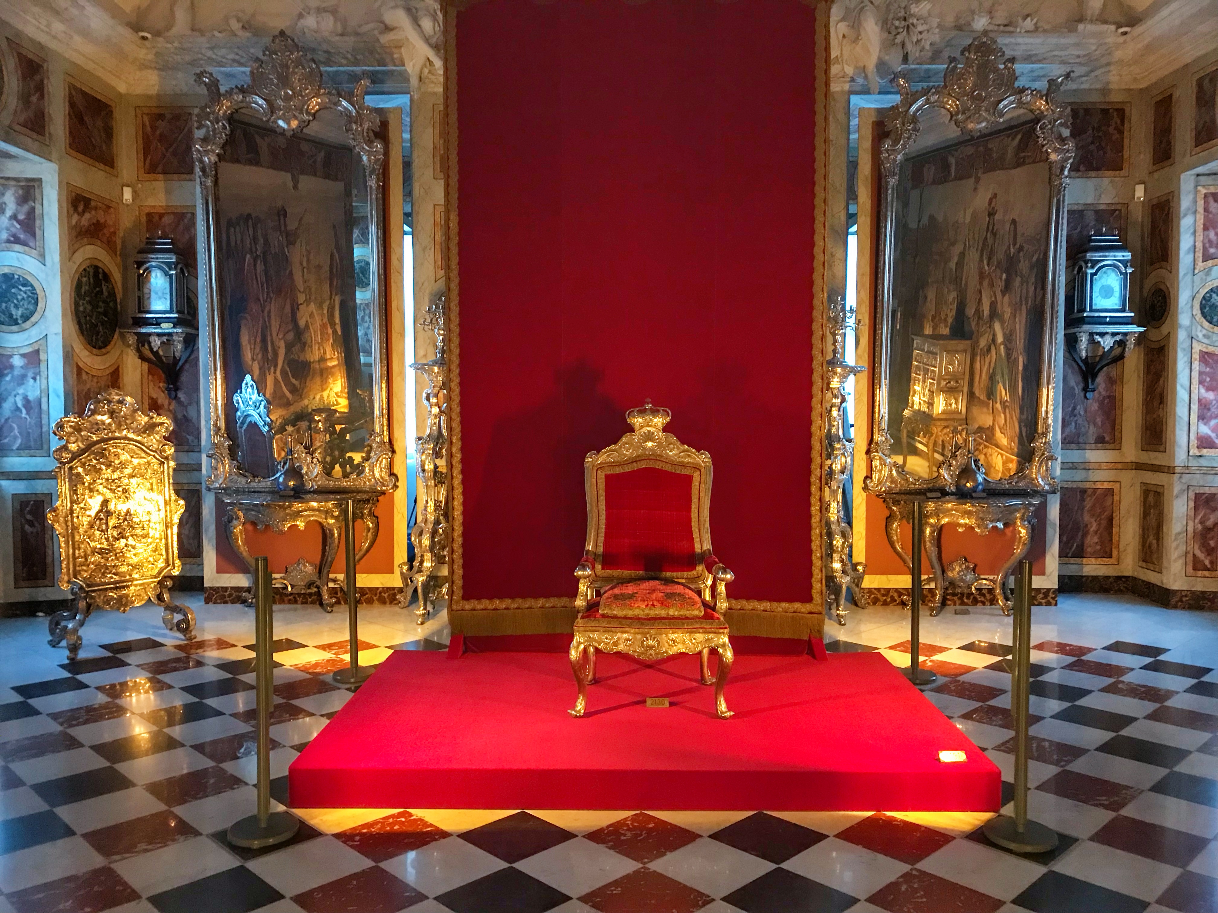 主な見どころには、銀製の3頭の実物大のライオン像がイッカククジラの牙と銀の王座を守って鎮座する大広間などがあります。