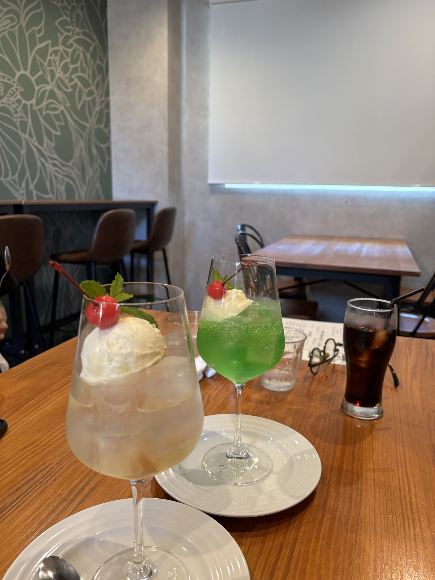 そして、〆はクリームソーダ!見た目も可愛く、味も最高でした。食事だけでなく、デザートまで完璧なお店です。5人全員大満足で、つくばで最高のイタリアン体験ができました。